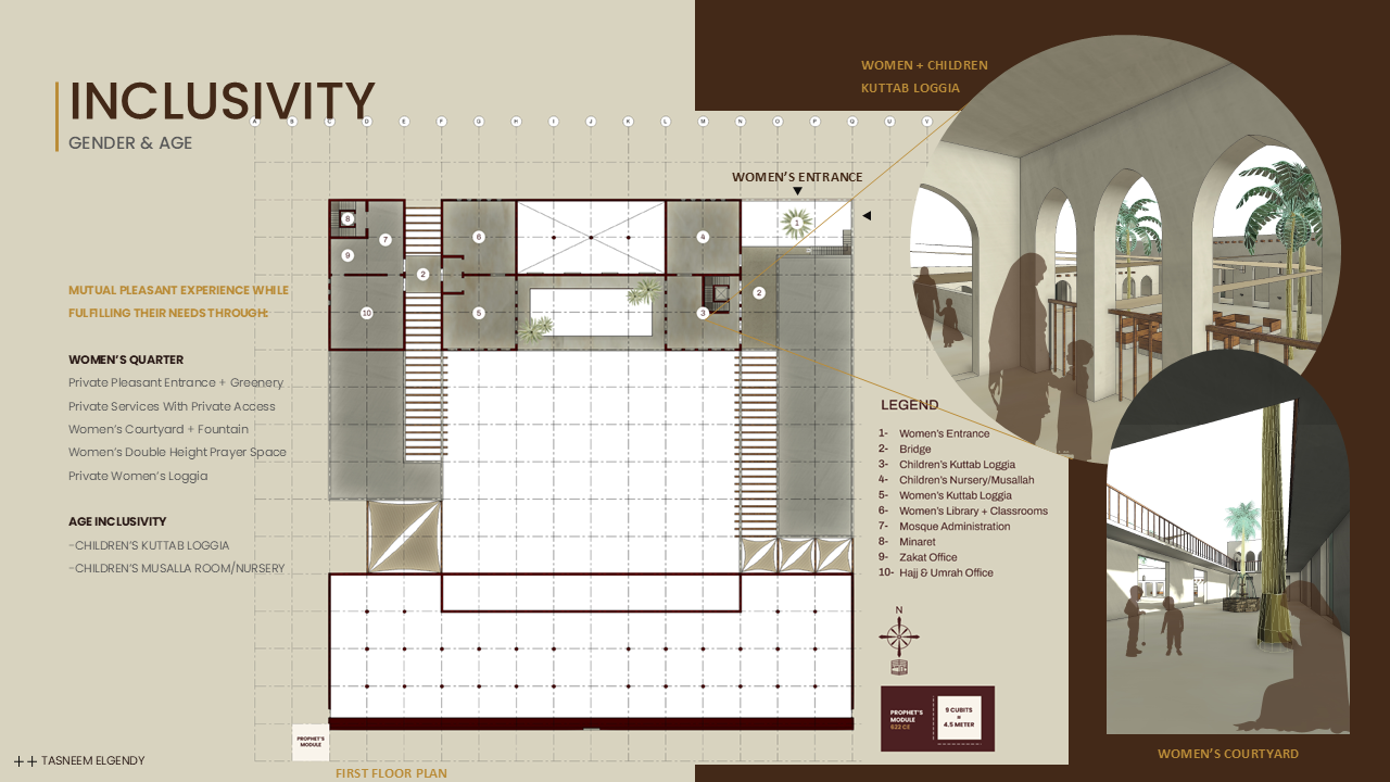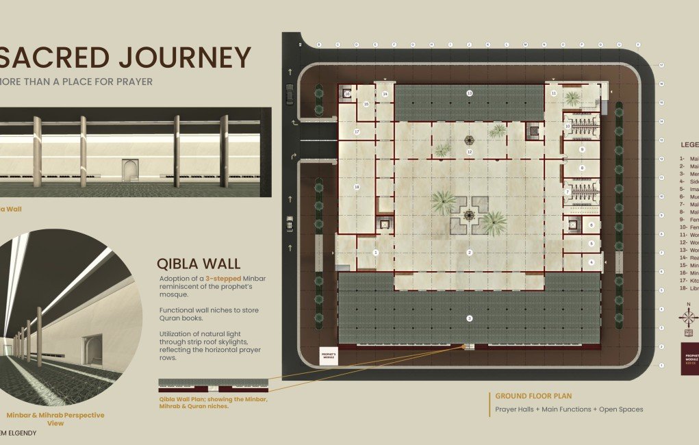 - The design should include a dignified female prayer space where the visual and auditory experience is not impaired.
