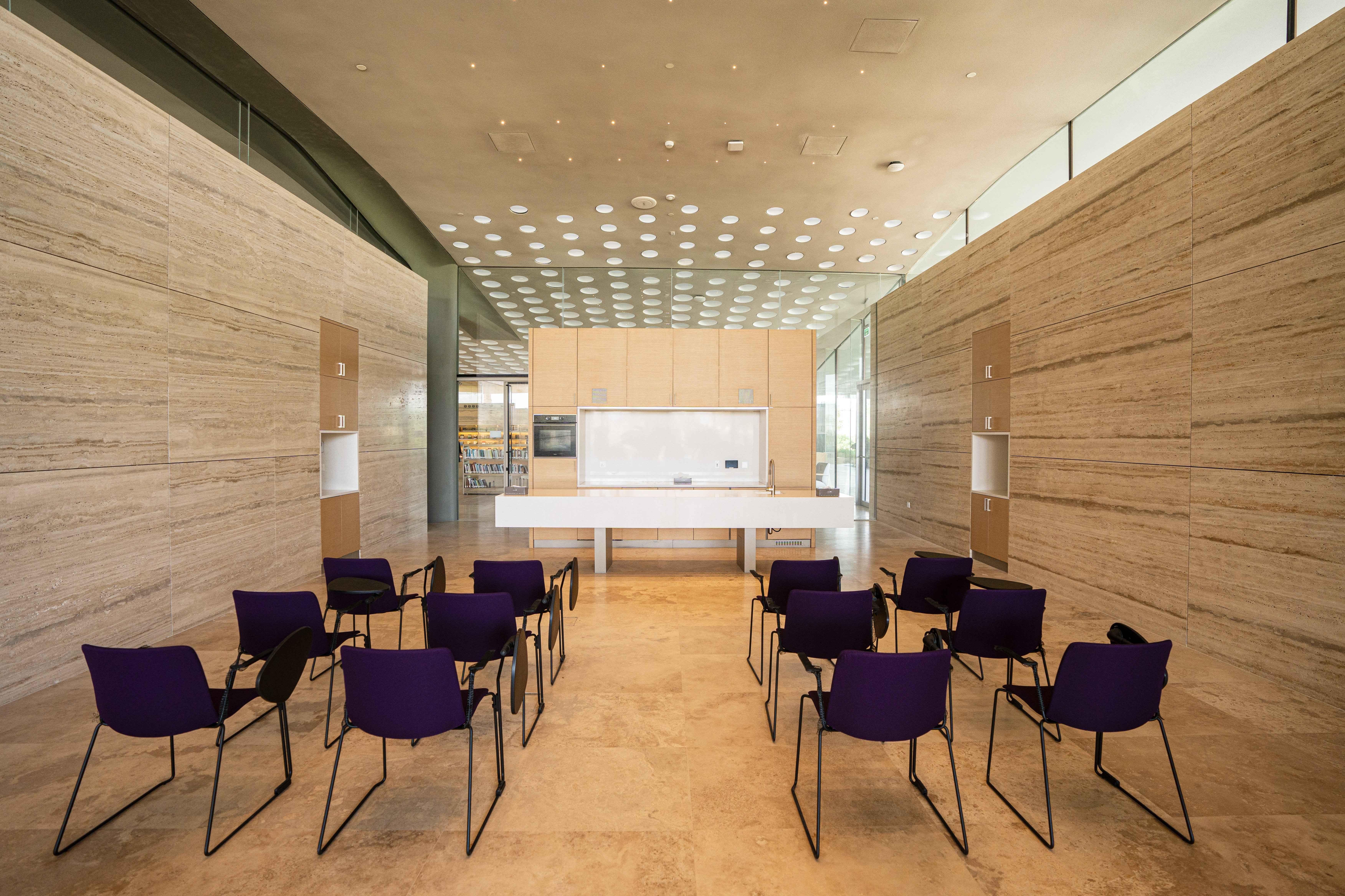 صُمم مبنى "المجادِلة" ليعكس قوة الفرد ووحدة المجتمع، حيث يوفر مساحات متعددة للراحة بهدوء ولمشاركة البهجة على حد سواء. تم تشييد المركز حول شجرتي زيتون تمتدان عبر السقف، تعبيرًا عن تطور النساء المسلمات وتقدمهن المستمر مع بعضهن البعض