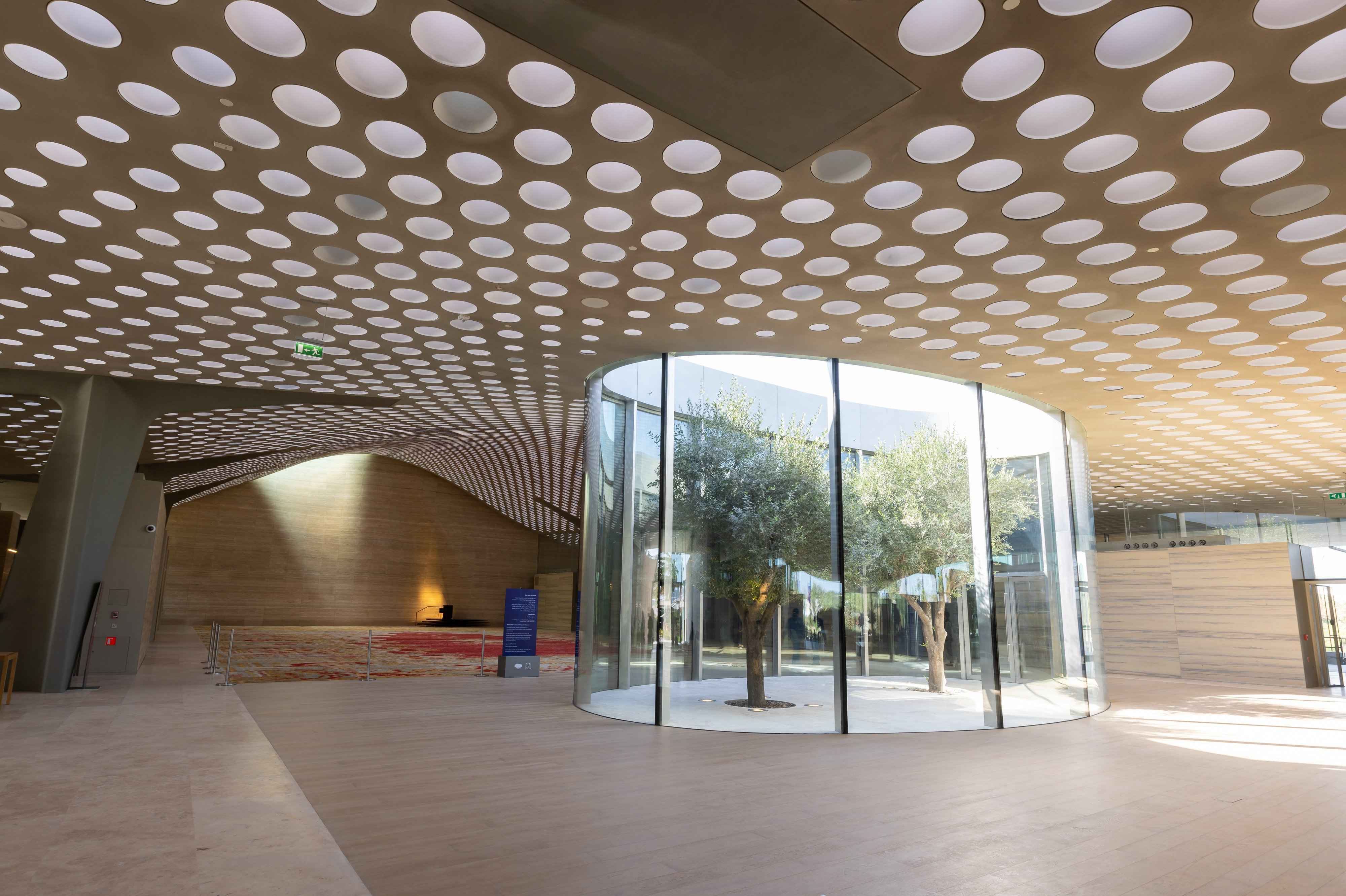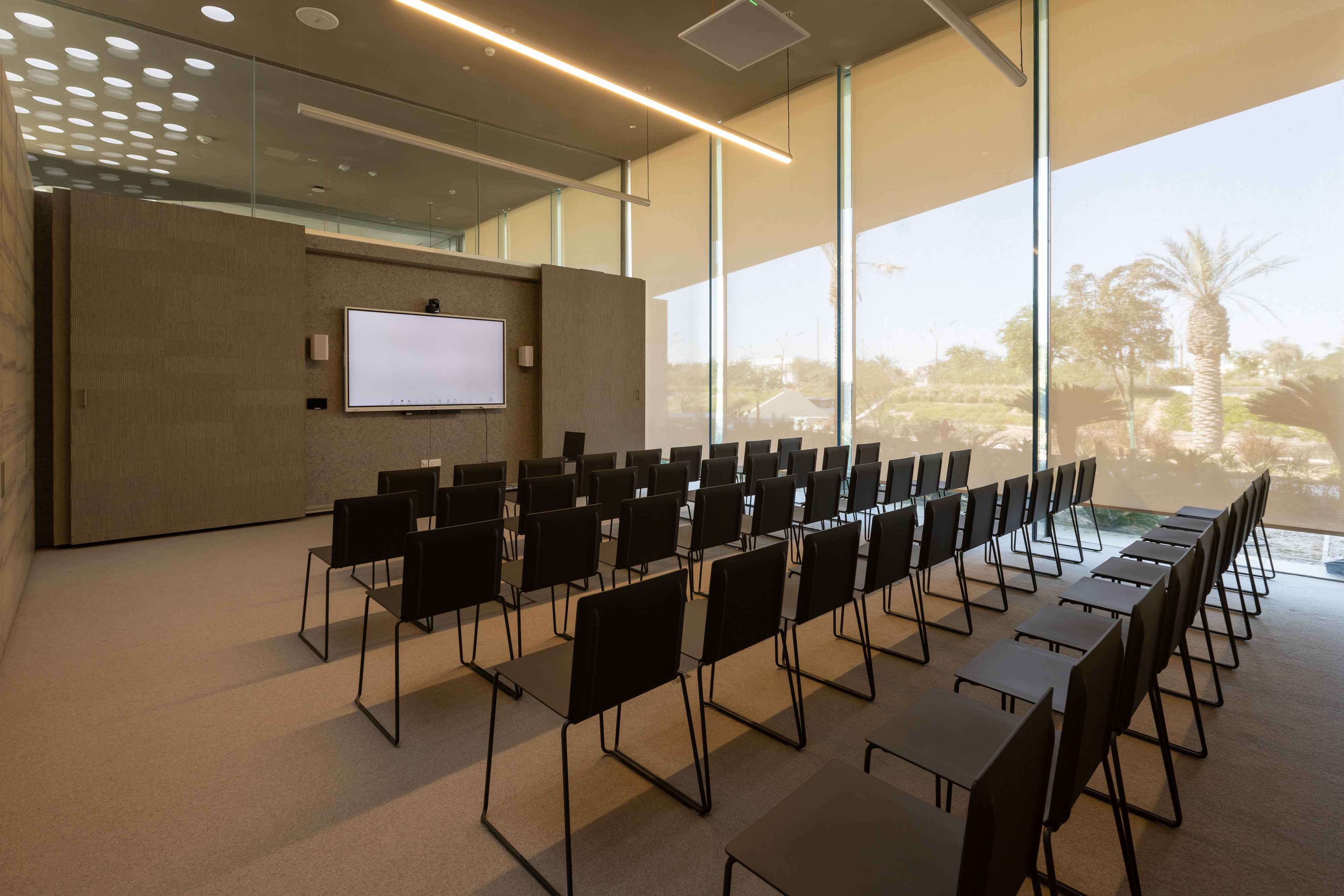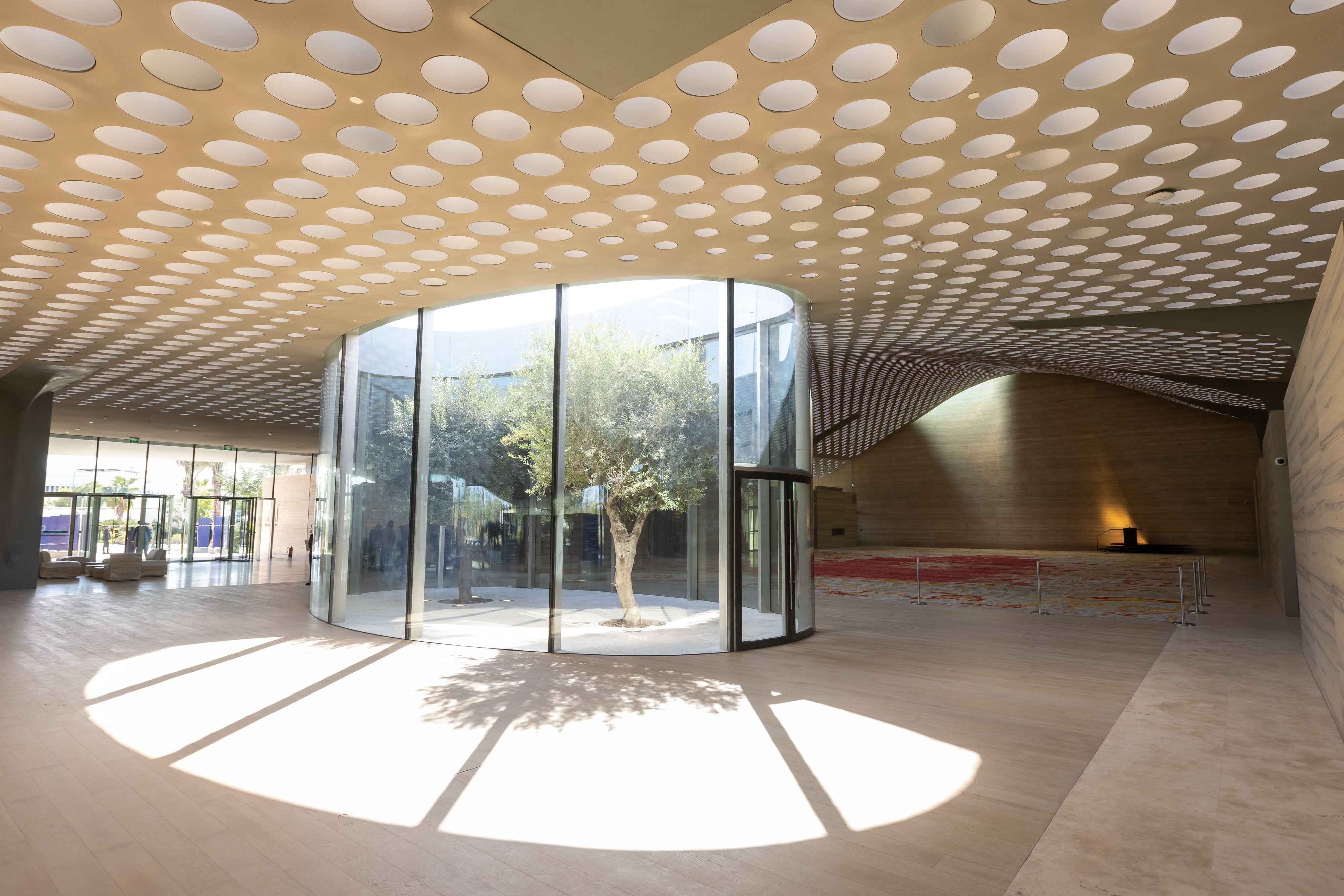 بدأت رحلتنا بإيماننا بأن البيئة والمساحة المحيطة بنا تلعب دورًا حاسمًا في تأثيرها علينا. لذا صممنا مبنى "المجادِلة" لإحلال السكينة في أنفس زائراتنا. أضفيت تفاصيل دقيقة في السقف، حيث يحتوي مئات المخاريط الضوئية، مما يخلق جوًا من الهدوء داخل المسجد المفتوح ومناطق التجمعات. يهدف التصميم المعماري إلى بث روح الطمأنينة والترويح عن الأنفس.